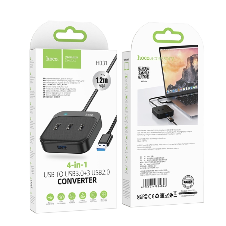 Hub 4 in 1 USB to USB 3.0 & USB 2.0 Converter – Hoco BH31